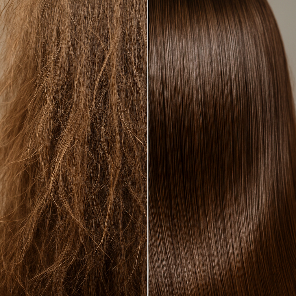 Daily heat, styling, and chemical-laden products strip away natural oils, leaving hair brittle, frizzy, and lifeless.